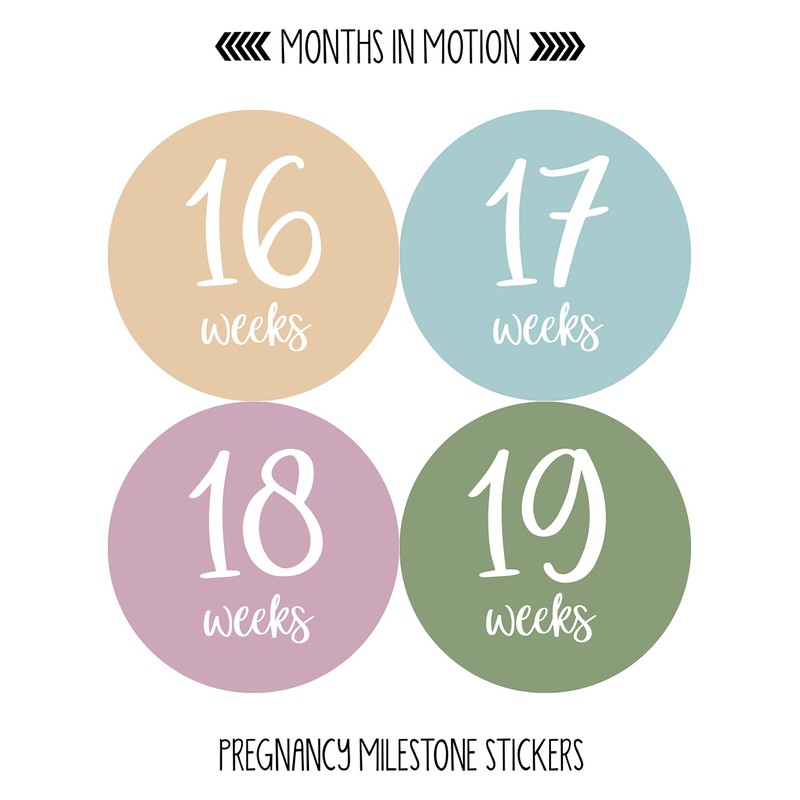 Months In Motion Pregnancy Weekly Belly Growth Stickers - Week to Week Pregnant Expecting Photo Prop - Maternity Keepsake - Baby Bump - Large Set of 36 Weekly Photo Sticker