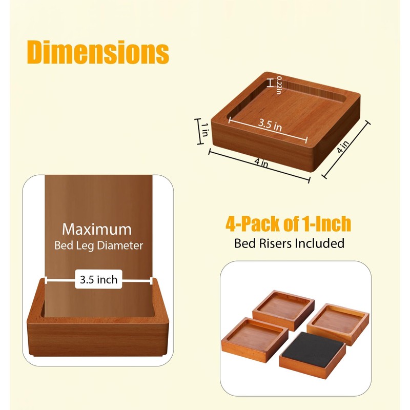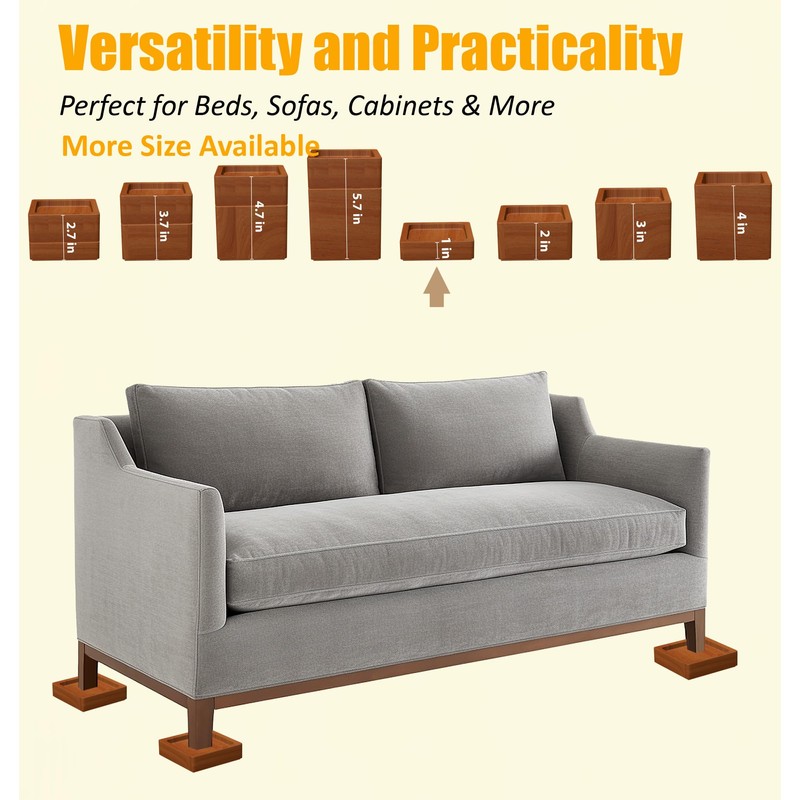 - Enhanced Stability and Elevation: Raise your furniture by 1 inches with our premium pine wood risers, designed to eliminate wobbling and provide a solid, secure lift. Perfect for heavy-duty use, these risers ensure long-lasting stability and reliability for all types of furniture.