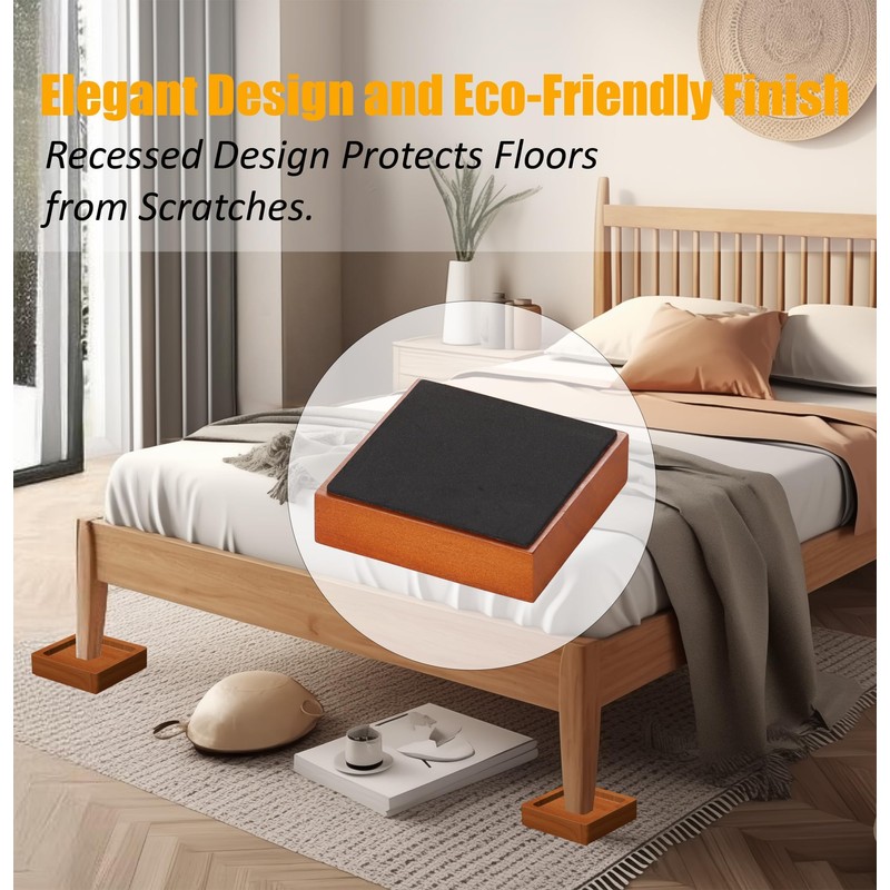 - Versatile Application: These risers are perfect for a wide range of furniture, including beds, sofas, cabinets, and chairs. Whether enhancing your home or office, they offer a practical solution for elevating your furniture while complementing your interior design.