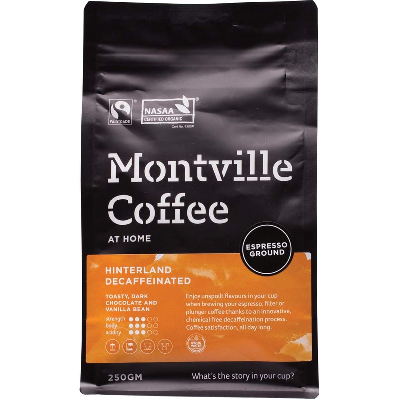 MONTVILLE COFFEE Hinterland Blend Espresso Ground Decaf Coffee, 250 g
