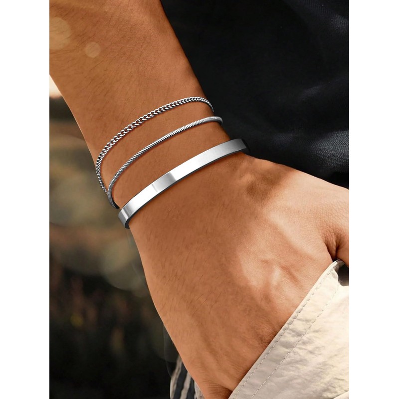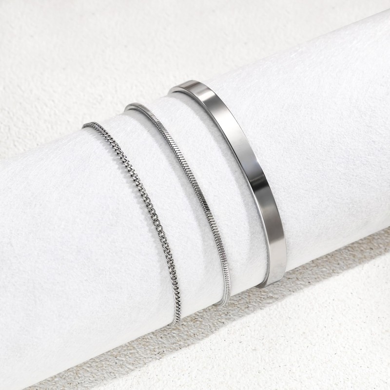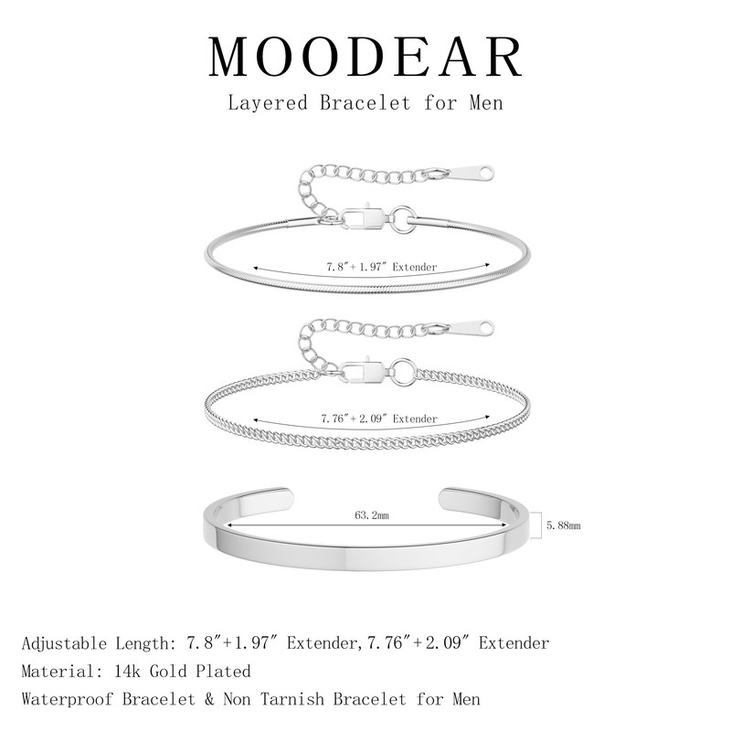 - Mens Bracelets Set : Trendy bracelet and bangles, our bracelet set includes 3 bracelets - an open cuff bangle, a snake chain bracelet, and a curb chain bracelet. You can wear alone or together, the most fashionable design makes you glamorous and at the forefront of fashion