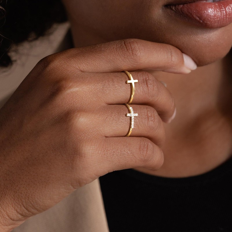 - Dainty Gold Rings: Elevate your style with the Moodear 14K Gold Plated Cross Ring Set; Featuring two intricately designed rings, this set exudes elegance and modern charm; The cross motif symbolizes faith and hope, making it a meaningful addition to your jewelry collection; Whether worn individually or stacked, these rings offer versatility for various occasions