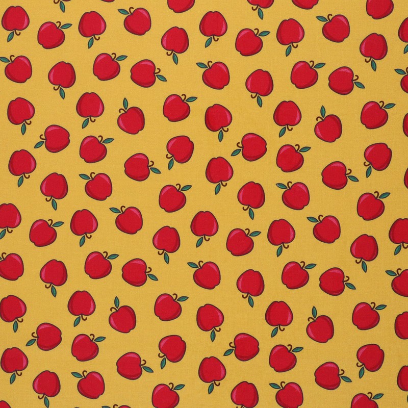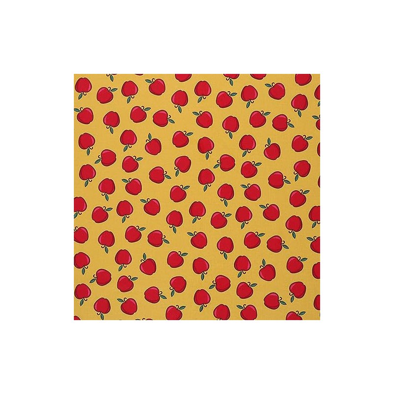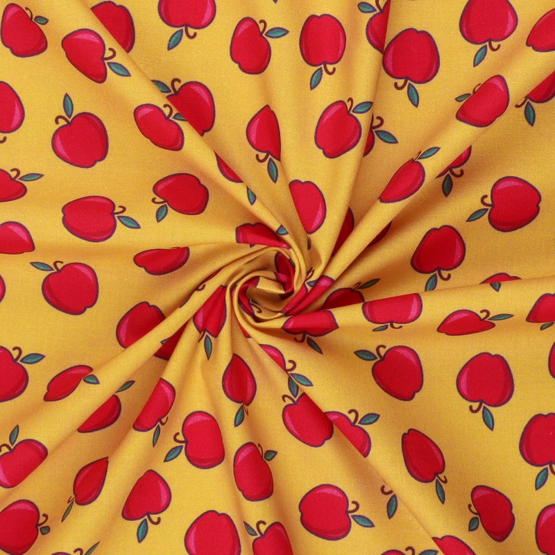 Mook Fabrics Cotton Back to School Apples, Yellow Cut by The yard