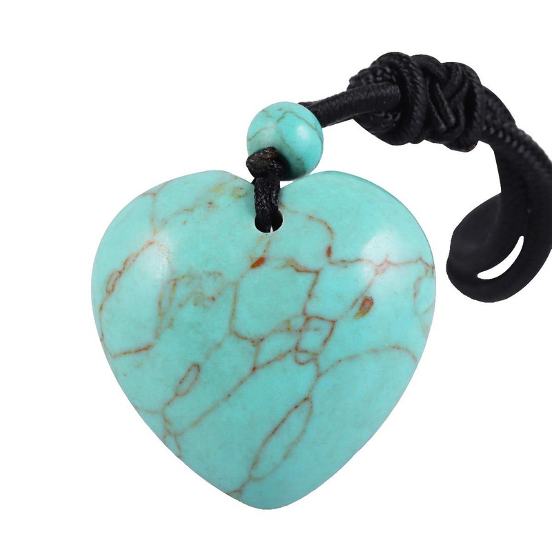 - Material: heart shaped stone pendant, an adjustable black nylon rope.