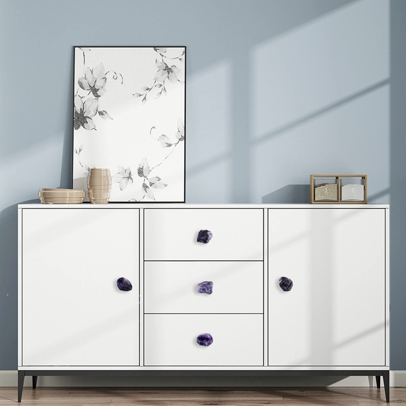 mookaitedecor Set of 2 Natural Amethyst Raw Crystal Cabinet Knobs, Rough Stone Drawer Handle Pulls for Kitchen Cupboard Home Decoration