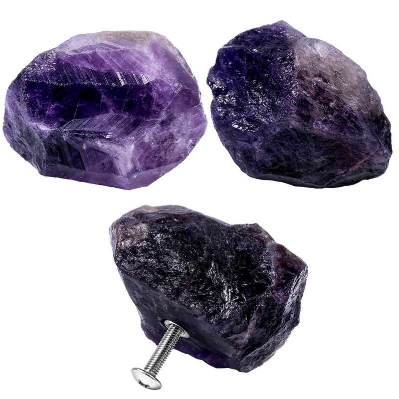 mookaitedecor Set of 2 Natural Amethyst Raw Crystal Cabinet Knobs, Rough Ston...