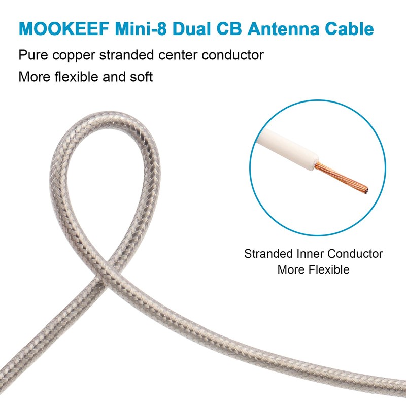 - ⭐Premium Materials -- The inner conductor of this dual cb coax cable is made with stranded pure copper that made the cable more flexible.The outer conductor is made with Aluminum foil and tinned copper braid which could maximum protect the signal over large distance.More than 95% shield performance,95% resistance to EMI and RFI.Waterproof FEP jacket allows the cable exposure in outdoor harsh environments.