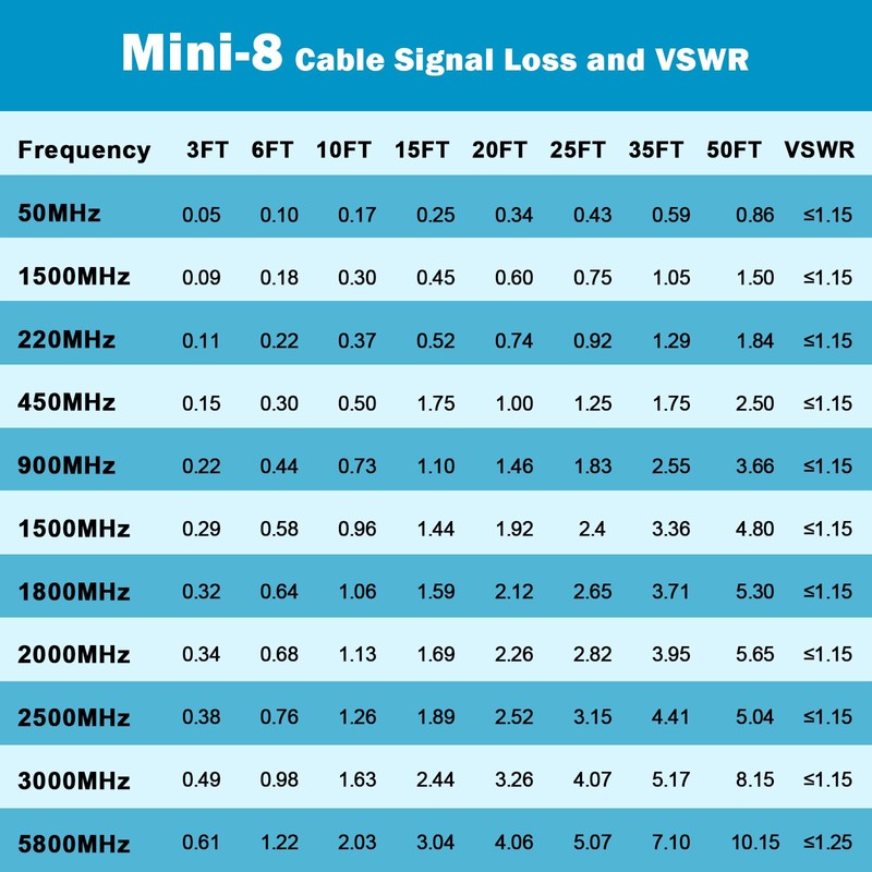 - ⭐Ultra Low Loss -- MOOKEERF rg8x coax cable(also called mini-8) is made with pure copper inner conductor,with double shielding to prevent signal leakage,interference and signal loss.It could support better signal transfer with minimum signal loss over large distances and higher frequency use.