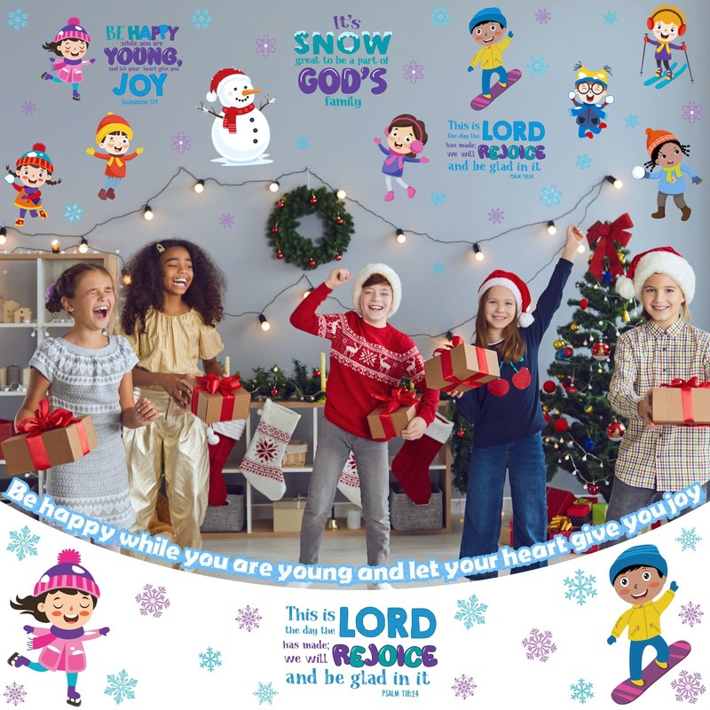 Mooliwe Winter Bulletin Board Decorations Christmas Religious Classroom Bulletin Board Kids at Play Snowflake Snowman Large Cutouts for Winter Home Christmas Holiday Sunday School Supplies