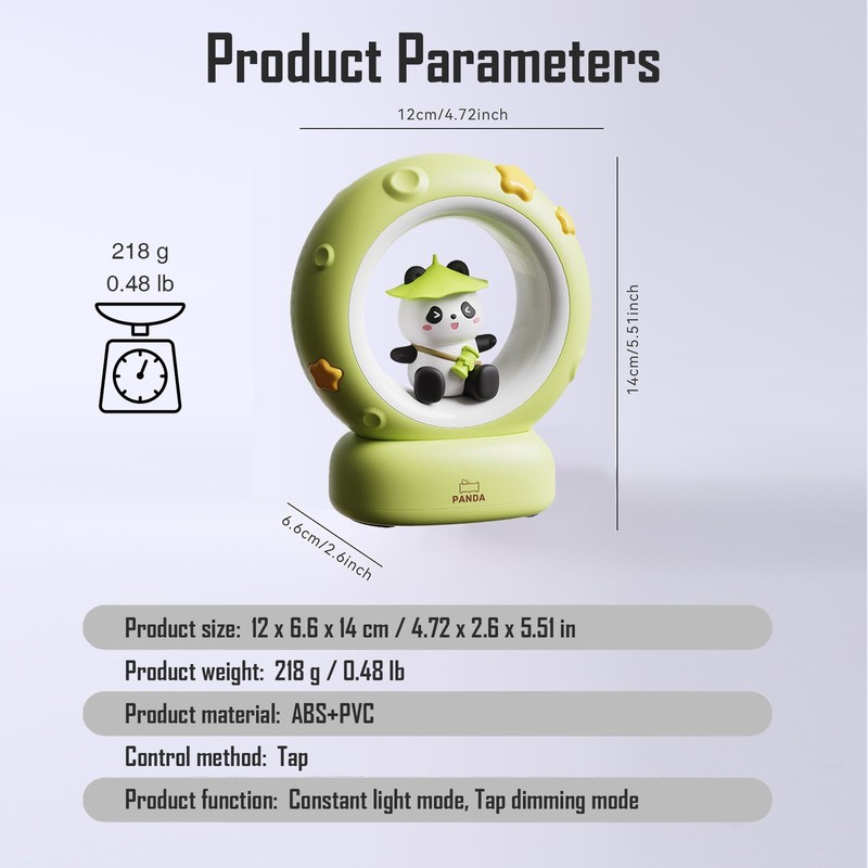 - [Cute Appearance for Kids] This night light has a novel and unique design. On the moon, there is a panda wearing a green lotus leaf hat, these are elements that children like. So this night light is perfect for kid's room, nursery, or as a gift for kids.