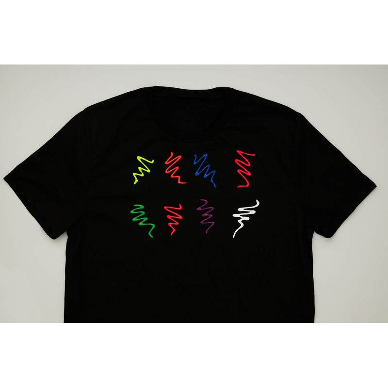 - VERSATILE APPLICATION – Perfect as a textile paint for clothes, t-shirts, bags, shoes, and canvas, and can also be used on wood, ceramic, and glass. Perfect for adding artistic designs to reveal a neon UV surprise.