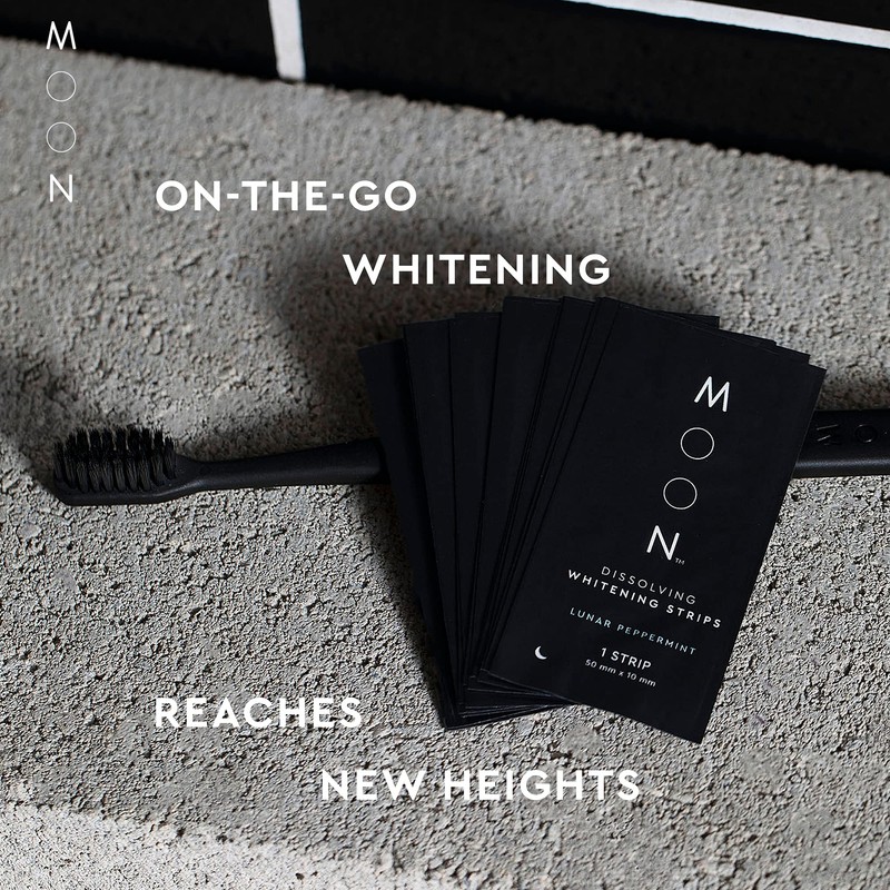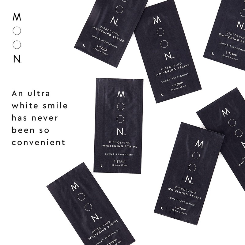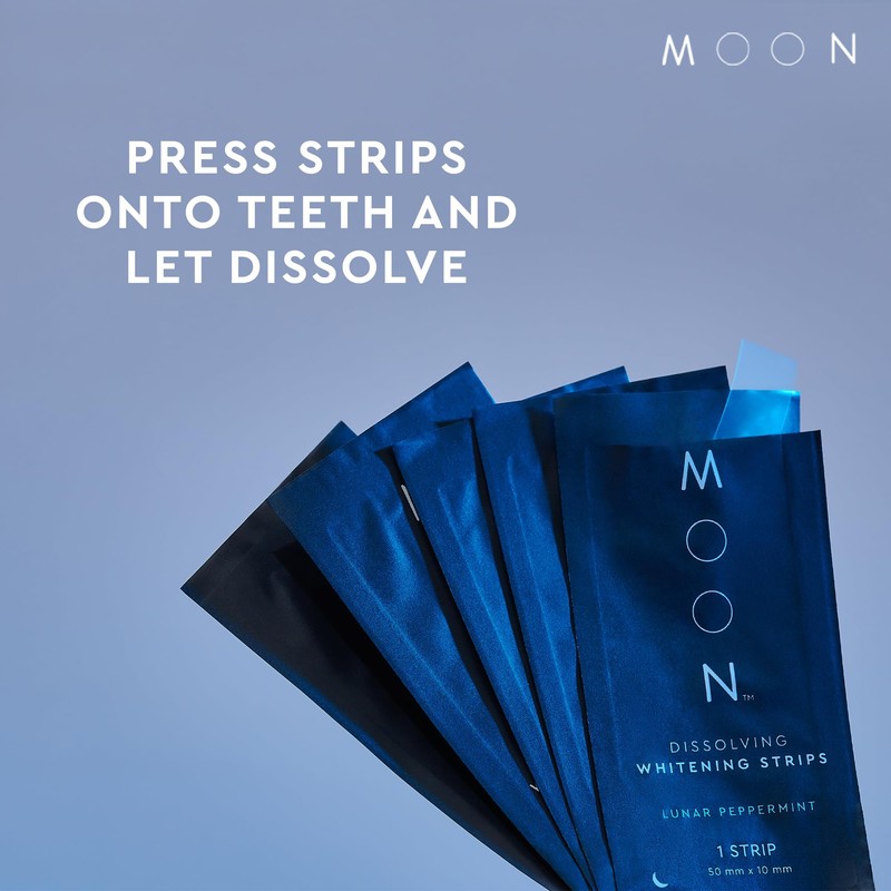 MOON Dissolving Teeth Whitening Strips - Vegan, Easy-to-Use, No Rinse White Strips - Hydrogen Peroxide and Essential Oils Infused Gentle Teeth Whitening Kit - Travel Essentials for Oral Care (56 Ct)