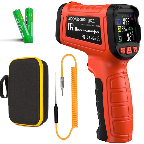 - Comprehensive Customer Support & Package Contents: MOONASCEND is dedicated to providing fast and professional customer support, with a 24-hour response time for all inquiries. The package includes an infrared thermometer, K-type thermocouple probe, toolbox, 2 AAA batteries, and a user manual. Please note: This product is not intended for measuring human body temperature.