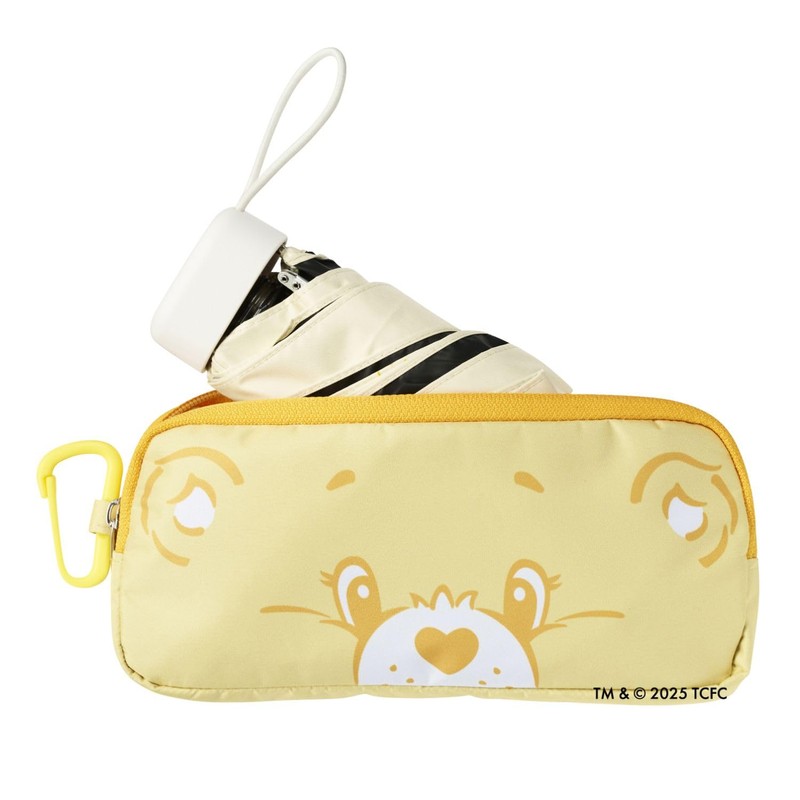 [Moonbat] CARE BEARS TM Parasol Folding Umbrella, Compact, Heat Shield, Blackout UV, UPF50+, For Rain or Shine, Carabiner, Case Included, 30310, 30311, 30312, 30314, 30315, 30316, lightyellow, Main
