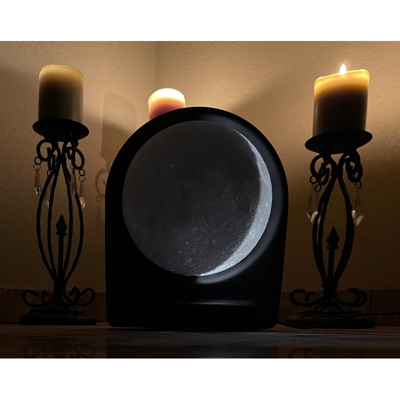 MOONDIAL - Automatic Moon Phase Lamp, Rotating Lunar Phase Tracker, 3D Printed Moon Clock, NASA LED Desktop Unique Gift, Decor, Dimmable Night Light, Office Desk Gadget, Mood Light, 7.7" x 9"