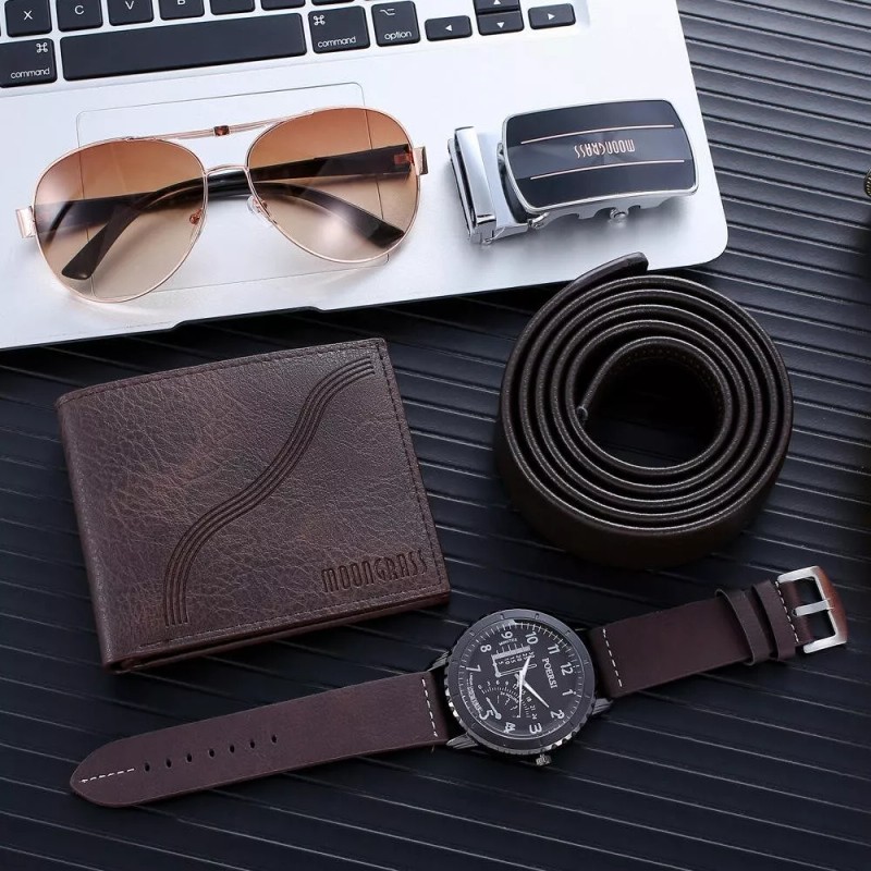 MoonGrass Accessory Gift Set For Men - 5 Pcs Set Plus Gift Box - Wallet, sunglasses, Watch