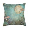 Moonlit Fairy Garden Junk Journal Pattern Moon Mushroom Teal Throw Pillow