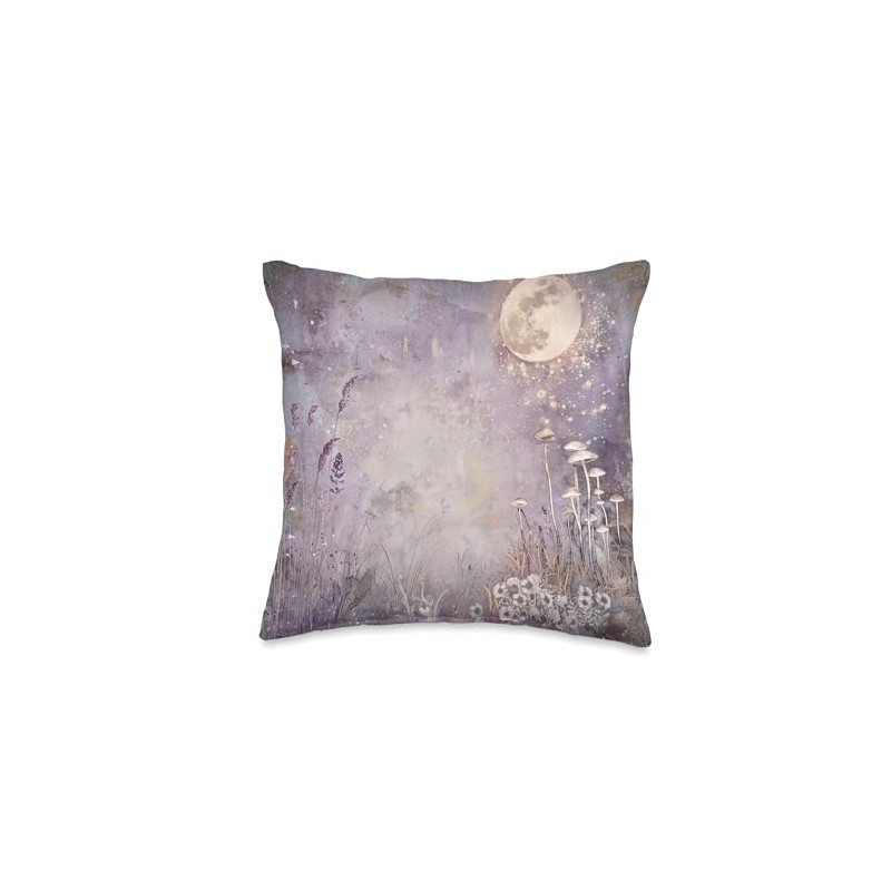 Moonlit Fairy Garden Junk Journal Pattern Purple Pink Moon Throw Pillow