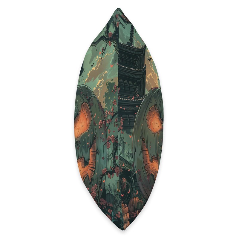 • Enchanted Japanese Halloween Scene with Sakura and Pumpkins, Japanese-Inspired Halloween Landscape Featuring Cherry Blossoms