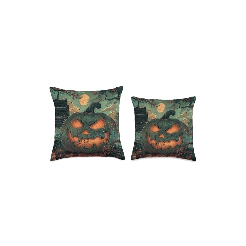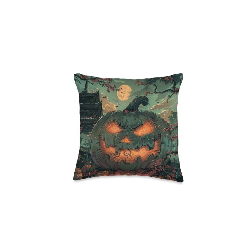 Moonlit Sakura: Halloween’s Haunted Trail Throw Pillow