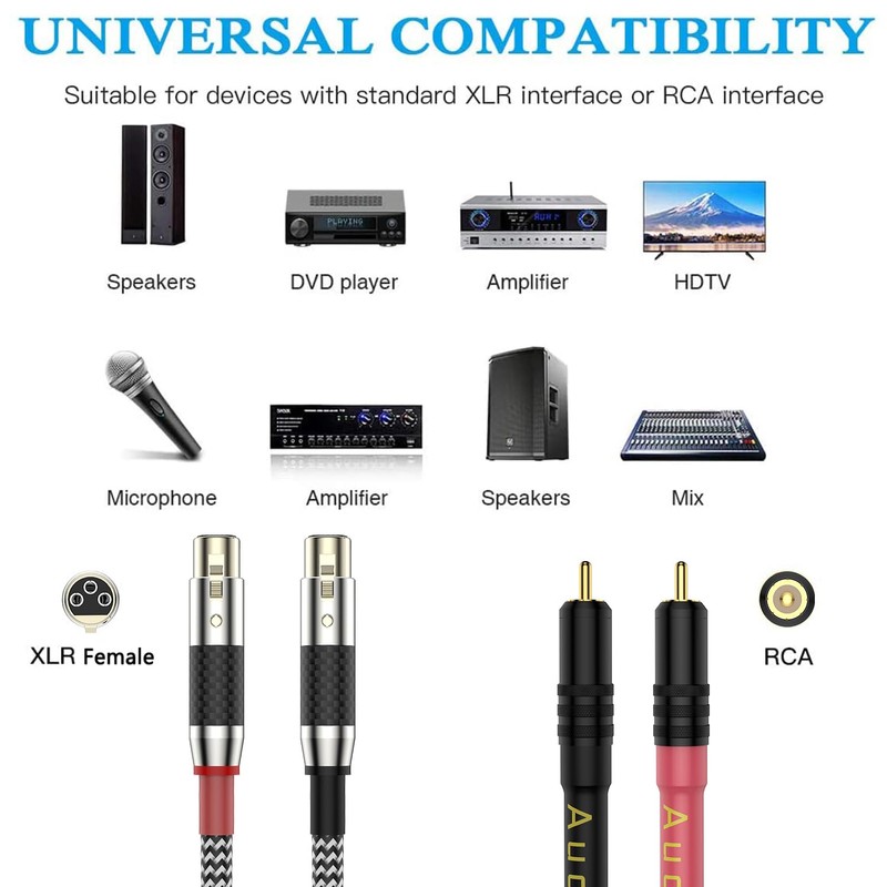 Adaptation equipment: Suitable for RCA red and white lotus interface or XLR card interface audio card,DVD,Blu-ray player,CD player,amplifier,decoder,headphone amplifier and other equipment connected to the power amplifier,tube amplifier,mixer,speaker and other lotus interface used by devices with the card interface.