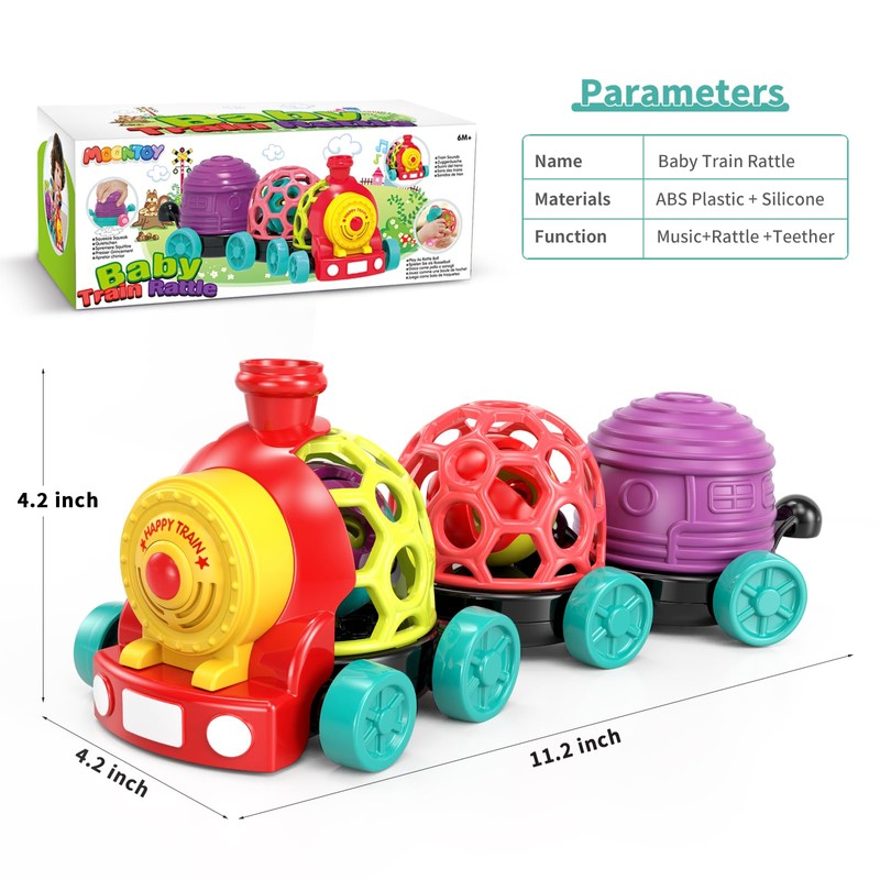 - ✅【Safe and Durable Materials】Rattle roll train toys are made of safe materials. The holes in the soft rubber ball of the car bodies are designed to follow the baby's usual grasping habits, perfect for babies to grasp, and lightweight enough for babies to hold. No choking hazard since the cars don't have small parts. No sharp edges and it is durable enough and resistant to falls. It's a toy that can be played from infancy to childhood.