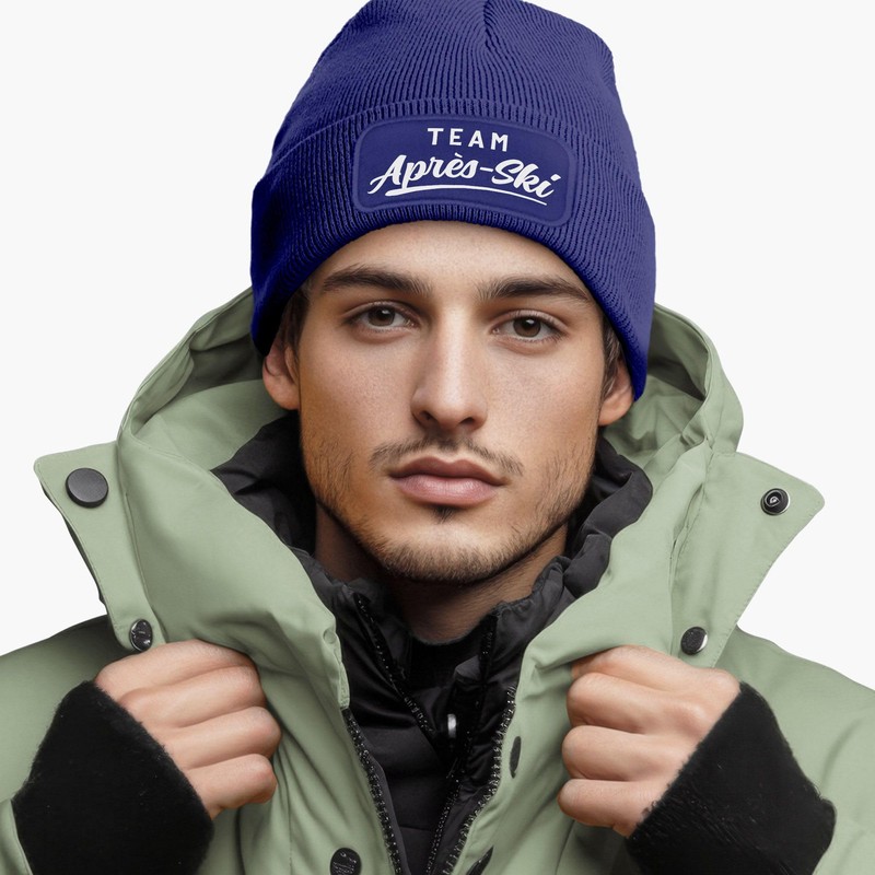 MoonWorks® Men's Beanie with Patch Knitted Hat with Saying Skiing Print Slope Caterpillar Funny Hat Men, blue