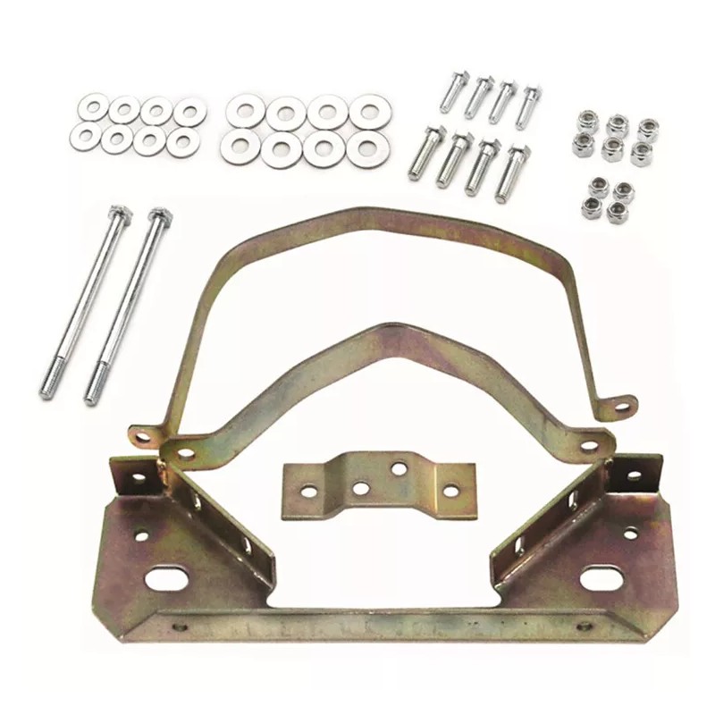Vw Bug Solid Transmission Mounts With Support Straps. Includes Front Nose Cone Mount, Rear Cradle Saddle Mount, Center Core Strap, Rear Bell Housing Strap And Hardware. This Kit Eliminates The Stock Mounts And Rear Stock Saddle Allowing Maximum Support With No Flex, A Must For Competition Use.