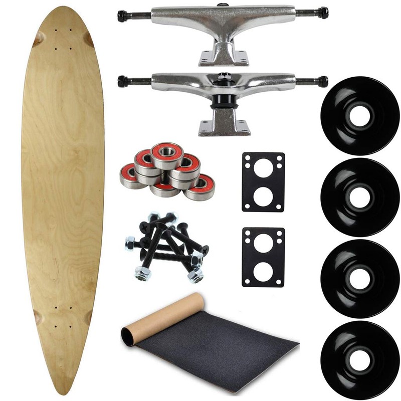 - This package comes with all parts to assemble your longboard. Includes: Moose Maple 43” Pintail Deck, Havoc 6.0 Aluminum Trucks, 68mm 78A Urethane Wheels, Precision Speed Bearings, Hardware, Risers, and Griptape.
