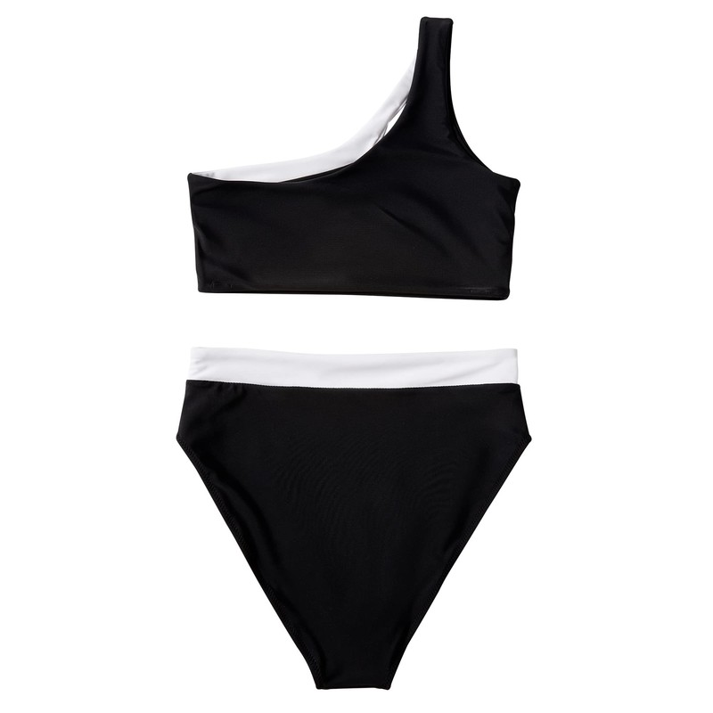 - Material: Polyester+Spandex. One shoulder color block bikini sets for women, comfortable, soft and durable.