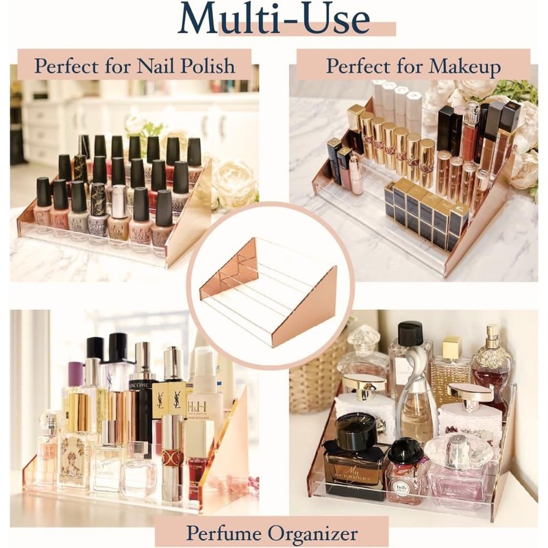 Moosy Life ML31 ピンクゴールドアクリル香水ディスプレイラック、3層