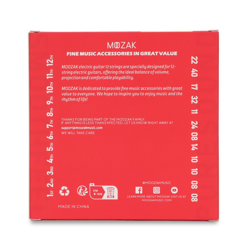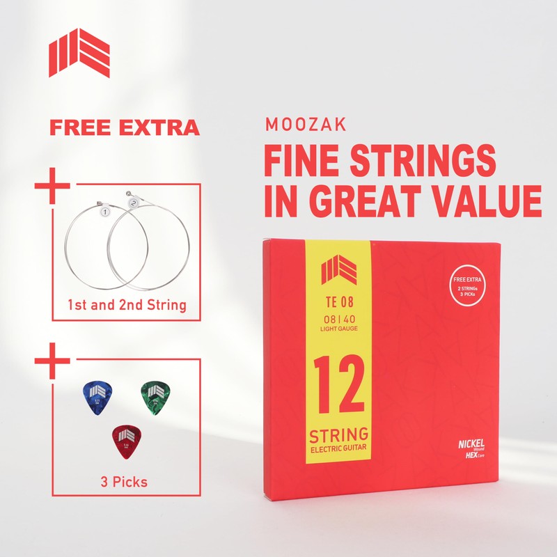MOOZAK Electric Guitar 12 Strings - Light Gauge 08-40 | 12-String Set with 2 Free Extra Strings and 3 Picks