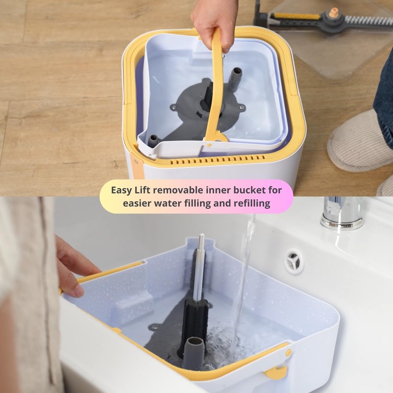 - DUAL COMPARTMENTS FOR CLEAN AND DIRTY WATER – Designed with separate sections, this system ensures the mop only uses fresh water, keeping your floors and surfaces spotless with every clean.