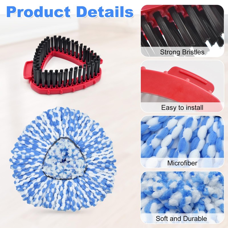 - [SCRUBBER MOP HEAD]: This scrubber mop head designed with a rounded triangle shape for easy cleaning of edges and corners. The scrubber head reaches into tight spaces and hard-to-reach areas, good for cleaning tubs, tiles, around toilets, decking, and tough dirt on floor tiles.