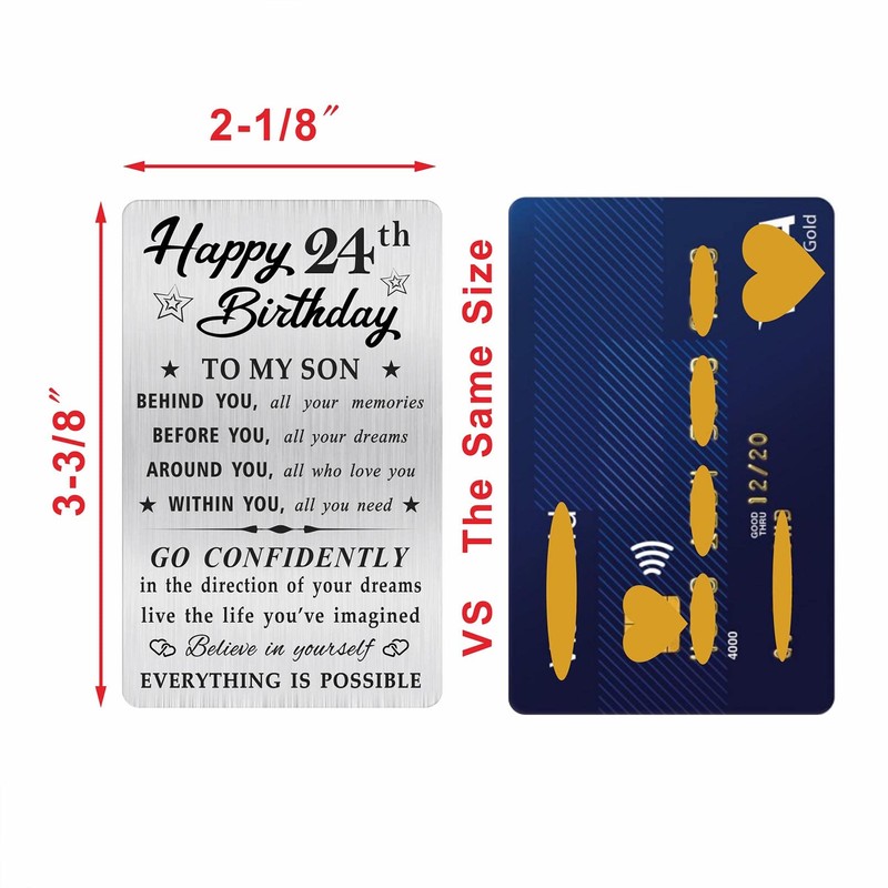 MOQIYXL 24th Birthday Card for Son, 24 Year Old Gifts for Son Engraved Wallet Card