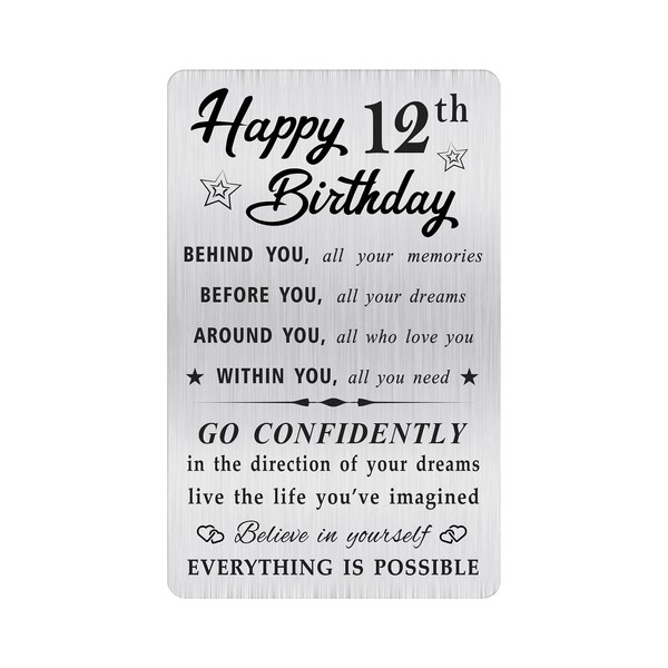 MOQIYXL Happy 12th Birthday Card for Boy Girl, Small Engraved Wallet Card for 12 Year Old Birthday Gifts