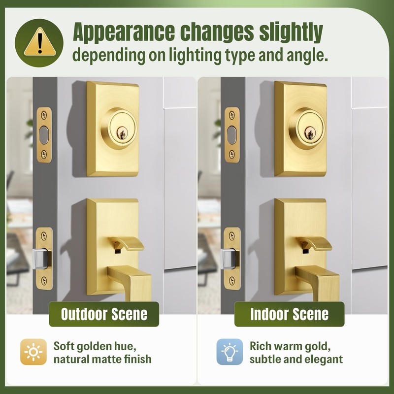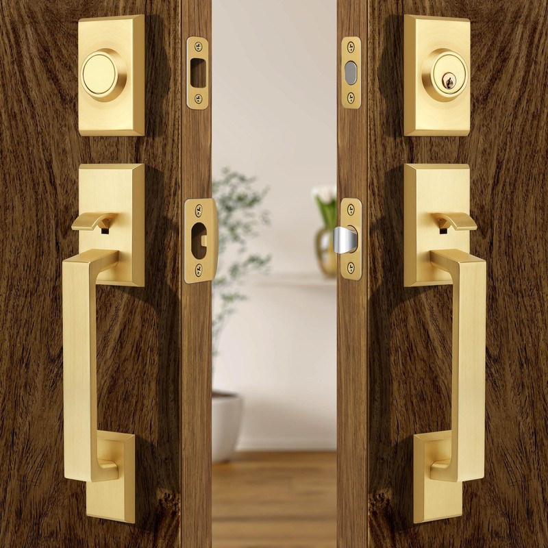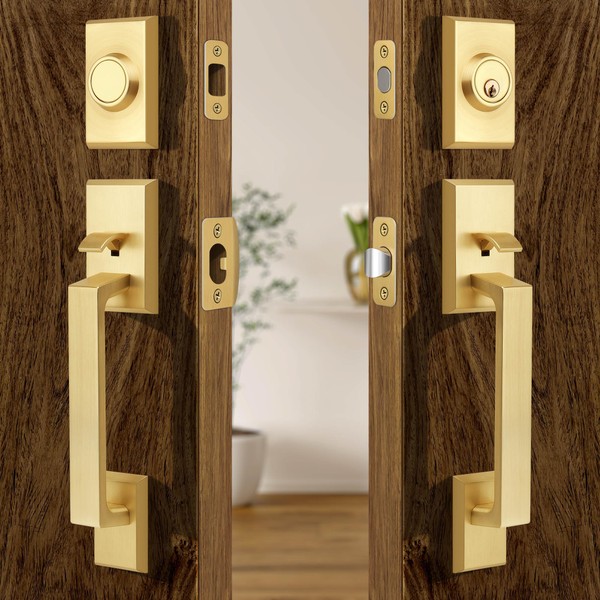 - [Premium Materia] Made from heavy-duty zinc alloy and metal, the brushed gold classic front door hardware set is engineered for long-term use, providing exceptional resistance to wear and tear.