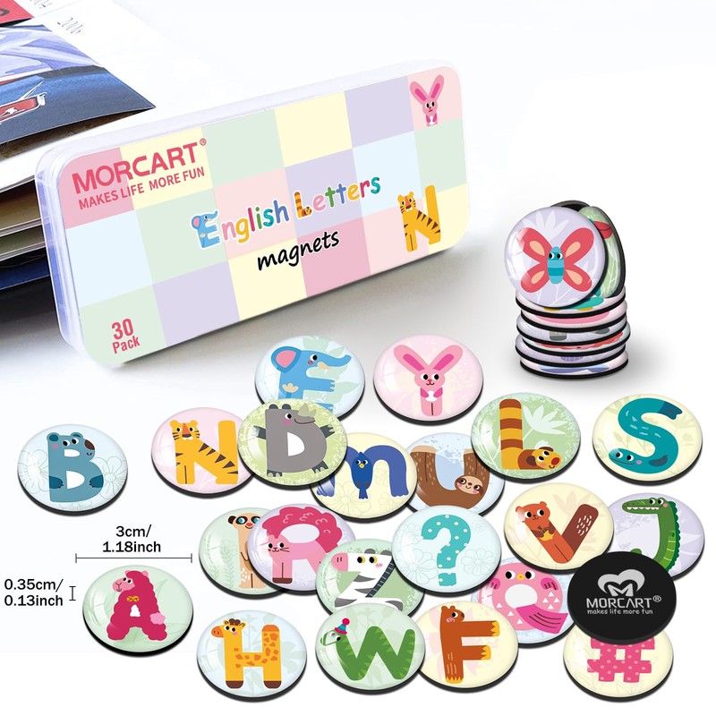 MORCART Children's Magnets, Animal Letters Fridge Magnets for Magnetic Board, Fridge Whiteboard, Notice Board, Kitchen, Funny Letters, Magnets, Decorative Gifts, Pack of 30