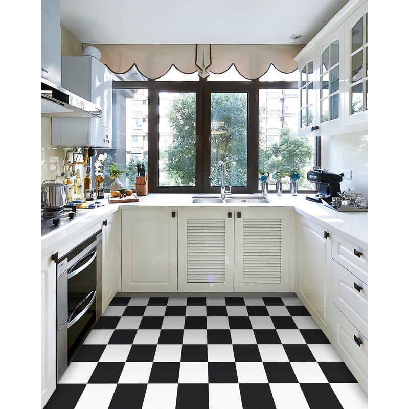 MORCART Peel and Stick Floor Tile, Vinyl Flooring Self Adhesive DIY: Black White Square 8" x 8" 20 PCS Waterproof and Removable Tile Sticker for Kitchen, Bathroom, Staircase FT-1011