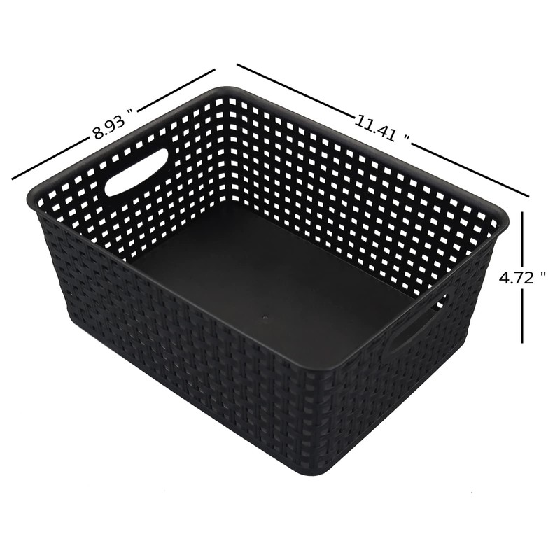 Morcte Plastic Weave Shelf Basket, 4-Pack Plastic Baskets Organizer, Black