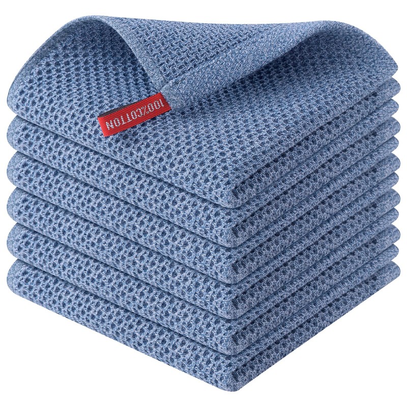 Mordimy Cotton Kitchen Dish Cloths, 6 Pack Super Absorbent and No Lint Waffle Weave Dish Towels, Fast Drying Dish Rags for Washing Dishes, 12 x 12 Inch, Navy Blue