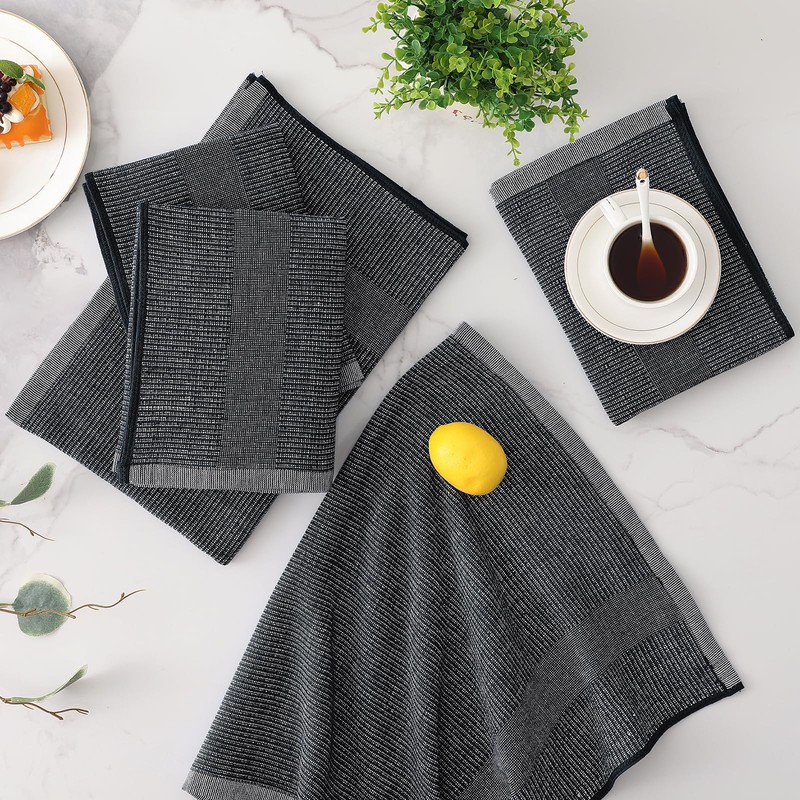 Mordimy Premium Kitchen Towels 6 Pack (18 x 28 Inches, Black), Large Cotton Kitchen Hand Towel, Flat & Terry Dish Towels for Drying Dishes, Super Absorbent Tea Dishtowels Set with Hanging Loop