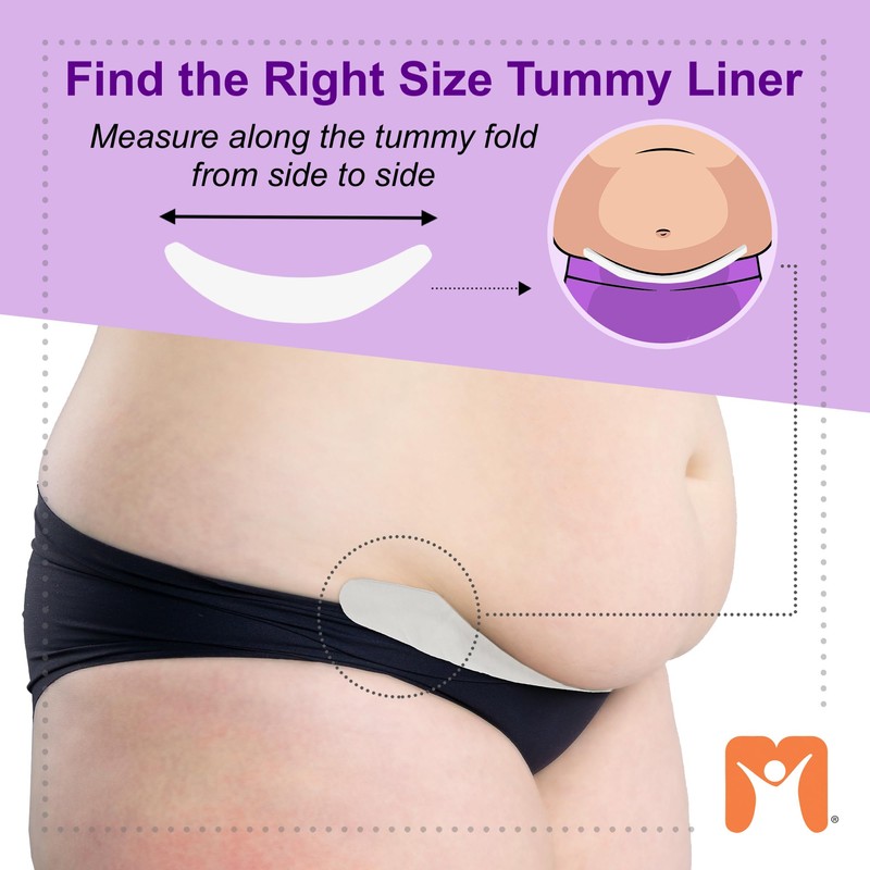 - SIZE DOWN - We recommend picking a size BELOW your regular clothing size, unless you prefer the liner to wrap a bit beyond your tummy fold. More of Me to Love's Tummy Liners are available in five sizes.. S=16" M=19.5" L=23" XL=27.5" XXL=31"