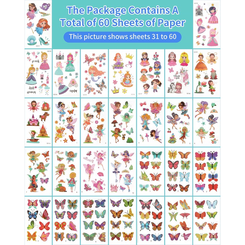 More than 500 patterns (60 Sheets) of temporary tattoo stickers are gifts for boys and girls, and Princess, butterfly and animal tattoos are prepared for children's birthday parties
