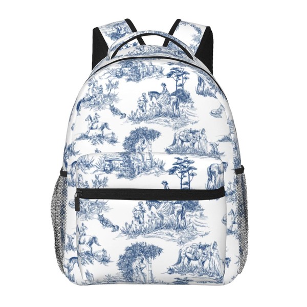 moremohome toile print backpack,coquette backpack,trendy backpack,aesthetic backpack,french style blue and white backpack,backpack for women,11.4 * 7.8 * 15.7 inches,01