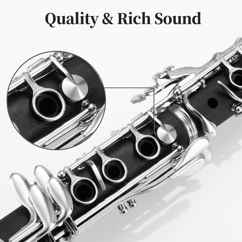 MoResolune B Flat Clarinet for Beginner, Student Clarinet Nickel-plated with 2 Barrels Stand Hard Case, Cleaning Kit for School Band Orchestra (Black)