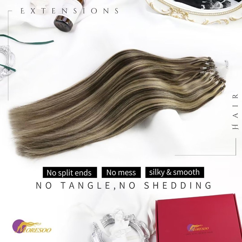 - 100% real human hair: Moresoo micro ring real hair extensions are made of high-quality hair. No tangling, no dandruff, no split ends in our hair. Moresoo is committed to providing you with a better shopping experience
