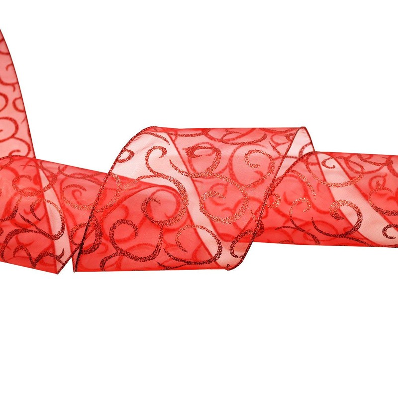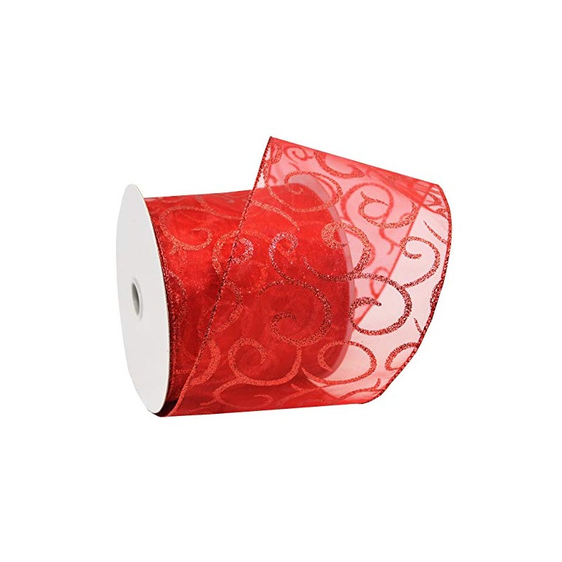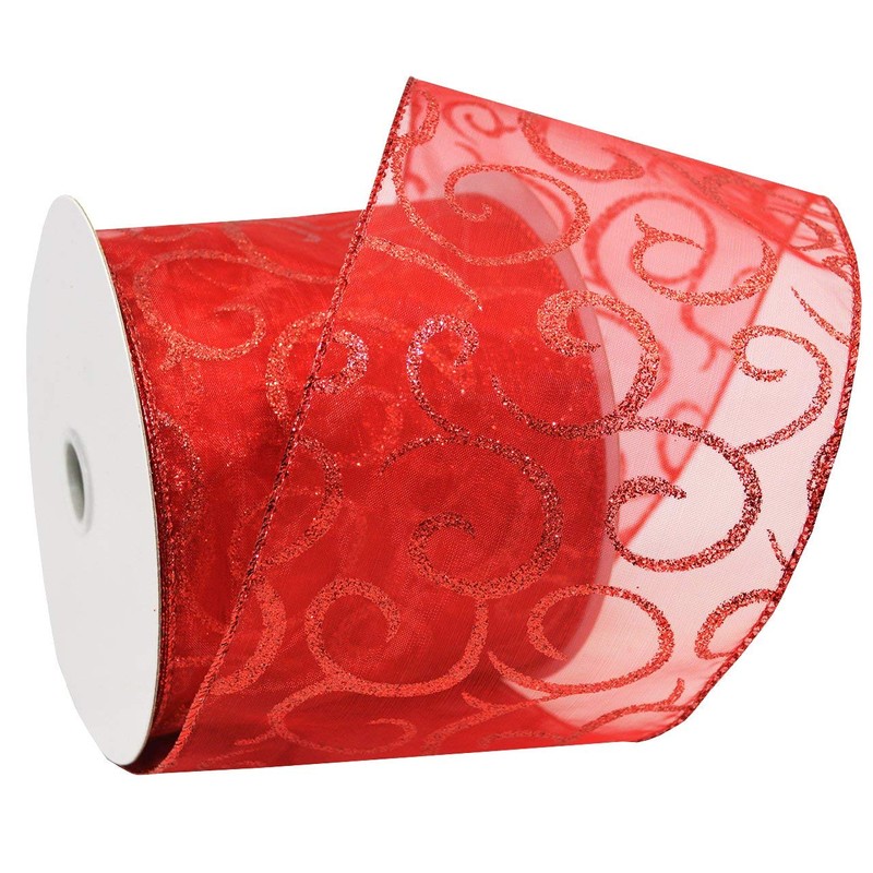 Morex Ribbon Swirl Wired Sheer Glitter Ribbon, 4-Inch by 25-Yard Spool, Red