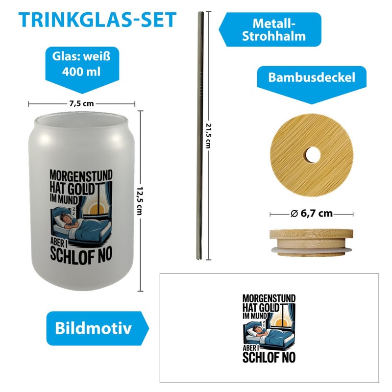 - Lieferumfang: 1x Morgenstund hat Gold im Mund, I schlof no Trinkglas mit Bambusdeckel Schlafende Person
