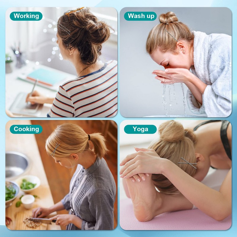 - Agarre seguro: cada horquilla tiene el pliegue en el medio en un lado, puede sostener el cabello sin deslizarse ni aflojarse. Sea cual sea el peinado que hagas, los sujetarán firmemente dándote la máxima comodidad mientras los usas